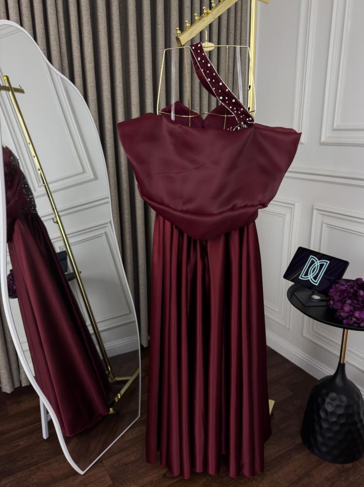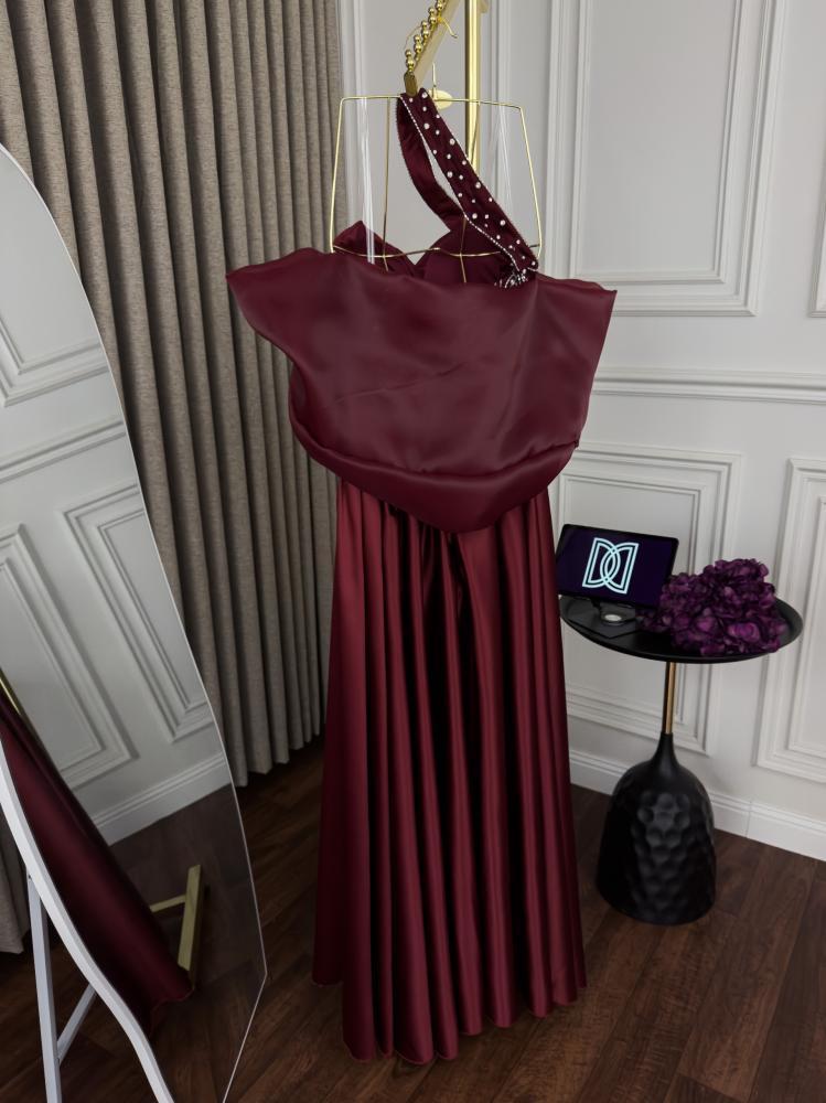 فستان سهرة بورجوندي أنيق بكتف واحد