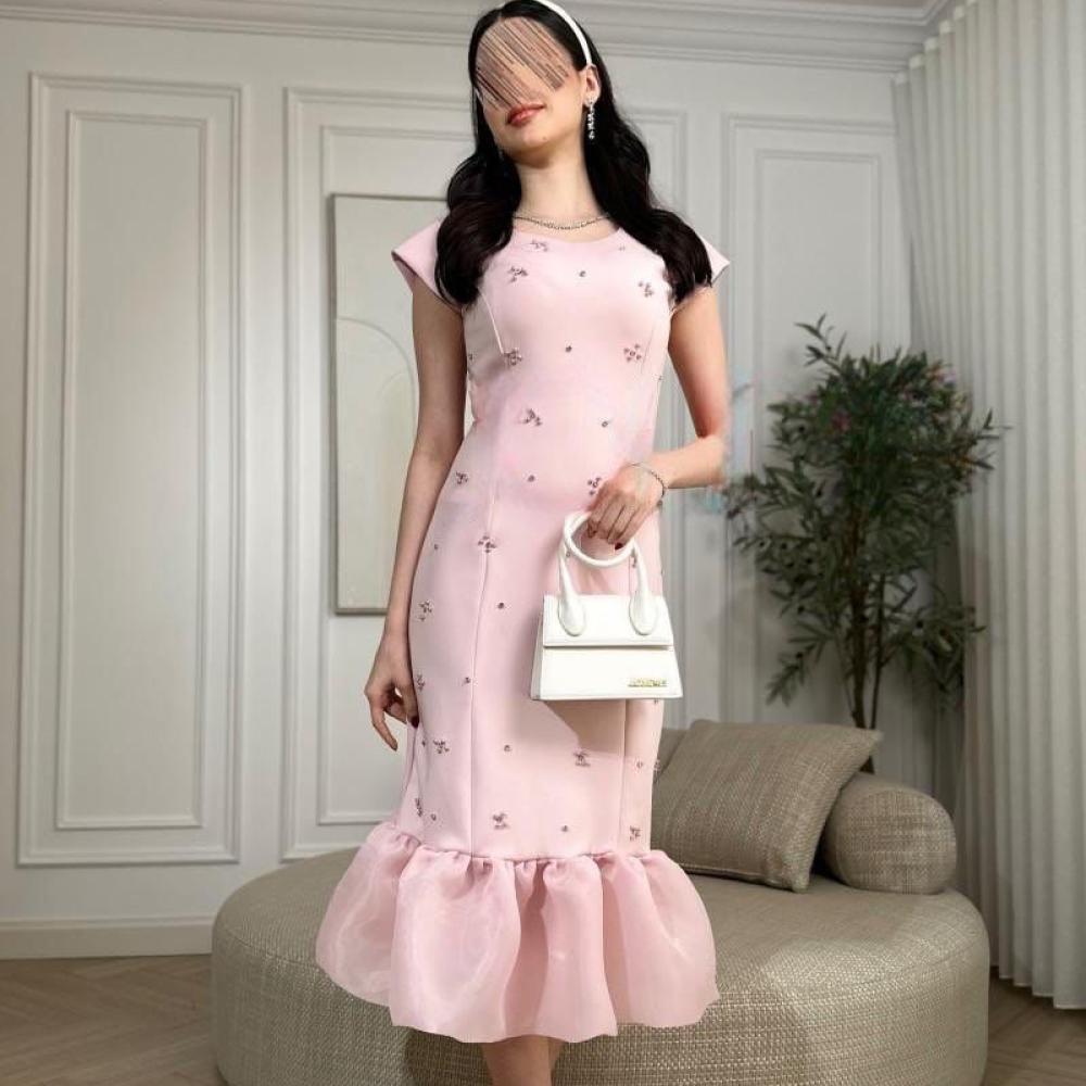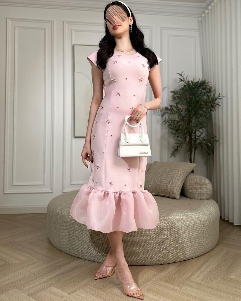 تألقي بفخامة مع "فستان قصير" يجمع بين الأناقة والبساطة في تصميم متقن. يتميز هذا الفستان بلونه الوردي الناعم، ويزينه تطريز الأزهار الرقيقة ليمنحك طلة أنثوية حالمة. الأكمام القصيرة تضيف لمسة من الديناميكية، والقماش الخفيف يضمن لك الراحة طوال الوقت.