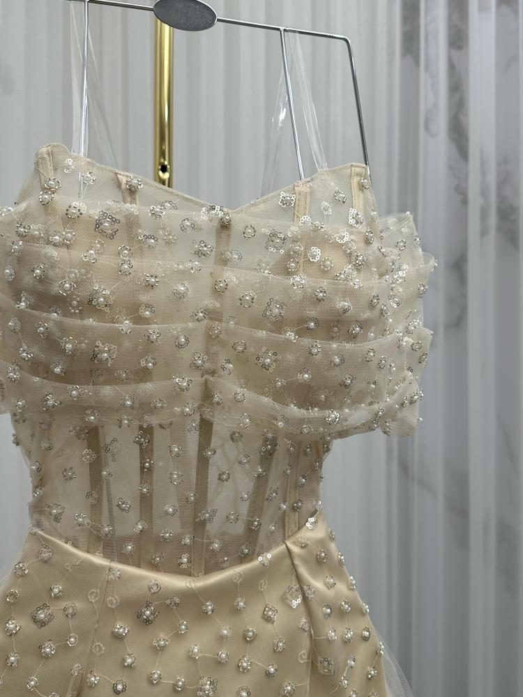 • التطريز: مزين بتطريزات يدوية دقيقة تزيد من فخامة الفستان.